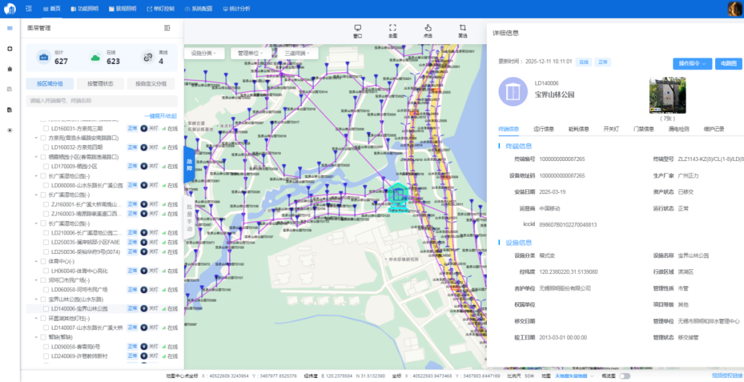 针对设备厂商垄断痛点,统一通讯协议与数据标准,成功整合惠通、正力等4家厂商共627套控制设备,成功破解以往各厂家设备与管理平台的垄断困局,构建起开放兼容、可持续发展的管控体系。实现市区重点区域设施集中监控与远程操控,筑牢集约化运行底座。